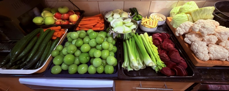 Varză, gogonele, conopidă, sfeclă, gulie, morcov, țelină, castraveți, măr & mini porumb 🌽🍎