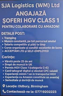 Angajam soferi Class 1- Amazon tramping.Pentru mai multe detalii va rugam sa ne contactati la nr de tel 07719202223.